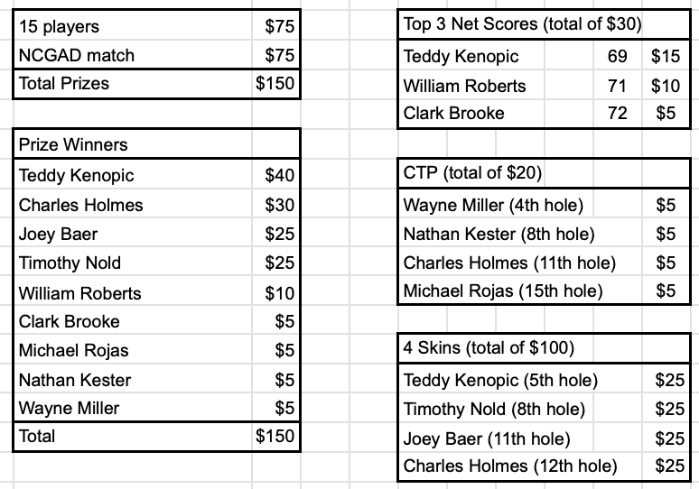 Home » Tournaments » June 3rd Tournament Results June 3rd Tournament Results June 10, 2023 ncgad Leave a comment