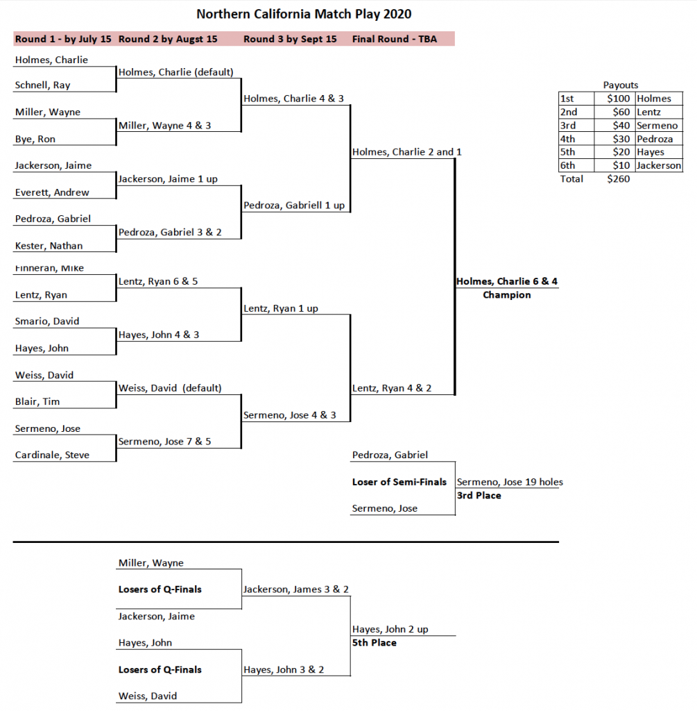 It will be $15 to enter the tournament and payable to: $NCGAD (please put down “Match Play” in the comment section so we know what it is for).
